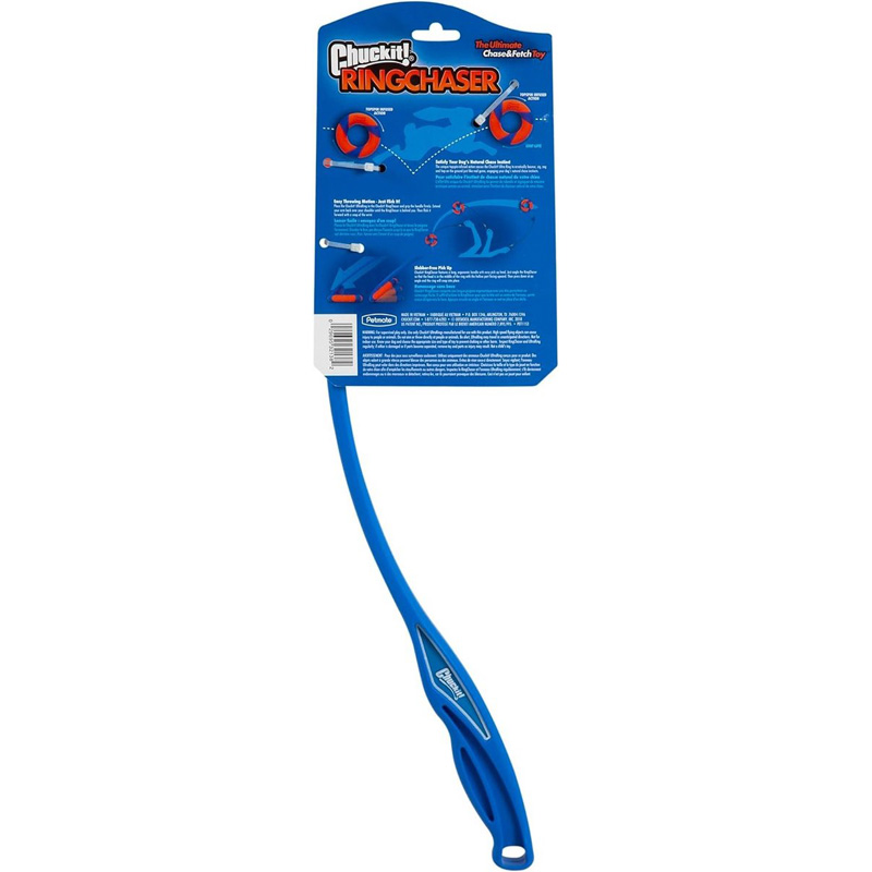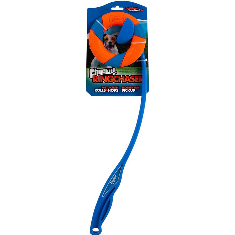 Gebruik de Chuckit Ring Chaser Launcher voor de Chuckit Ultra Ring voor extra speelplezier! De unieke Ultra ring rolt, stuitert, springt en zigzagt namelijk nog verder én hoger met de Chuckit Ring Chaser Launcher. De werpstok heeft een lengte van 56 centimeter en een lange ergonomische handgreep, waardoor de ring gemakkelijk op te pakken is. De werpstok is zo te plaatsen dat de kop in het midden van de ring zit. Druk vervolgens onder een hoek naar beneden en de ring klikt zich vast. Op deze manier hoeft u niet te bukken om de Ultra Ring op te pakken en gebruikt u gemakkelijk de Chuckit Ring Chaser Launcher!
