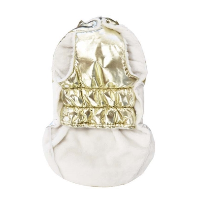 De Croci Hondenjas Padded Gilded 35 cm is een hondenjas voor koude dagen, gemaakt met zilver en goud, een warme voering van imitatie schapenbont, en opening voor halsband en tuig. Warm en toch classy voor de dag komen? Kies van voor de Croci Gilded hondenjas! Met deze waterdichte hondenjas blijft jouw hond warm en droog deze winter, maar komt hij of zij ook nog eens stijlvol voor de dag. Deze jas is uitgevoerd in wit met goud en zilver, en gevoerd met heerlijk zachte, warme imitatie-schapenvacht. Door de combinatie van het elastische buikdeel ben je gegarandeerd van een perfecte pasvorm. De jas kan zowel met tuig als met halsband gebruikt worden. Gemaakt van 100% gerecycled polyester!