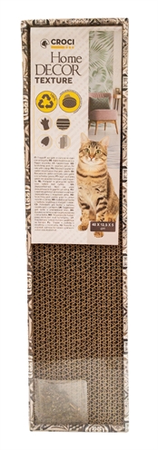 De Croci Krabplank Homedecor Textuur Maiolica 48 x 12,5 x 5 cm is een kartonnen krabplank voor de kat, met omkeerbaar kartonnen krabvlak, moderne print en kattenkruid.