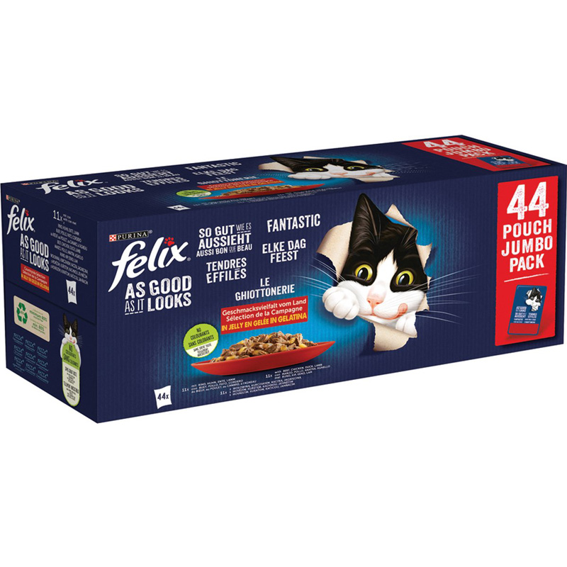 De Felix Elke Dag Feest Countryside Selectie Rund/Kip/Groenten 44X85 gr is compleet en gebalanceerd natvoer voor katten van kwalitatief hoogwaardige ingrediënten. Deze onweerstaanbare maaltijden zien er ontzettend lekker uit en ruiken heerlijk. De maaltijd bestaat uit malse reepjes in een heerlijke gelei. Jouw kat zal ervan smullen! De voeding is een bron van essentiële omega 6-vetzuren met de juiste combinatie va uitgebalanceerde vitaminen en mineralen voor nóg meer kattenkwaad.