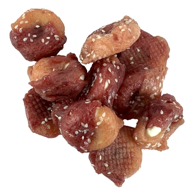 Samenstelling: Lamsvlees 28%, kippenvlees 28%, tarwebloem, rijstbloem, glycerine, olie en vetten (puur plantaardig), sesam