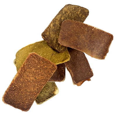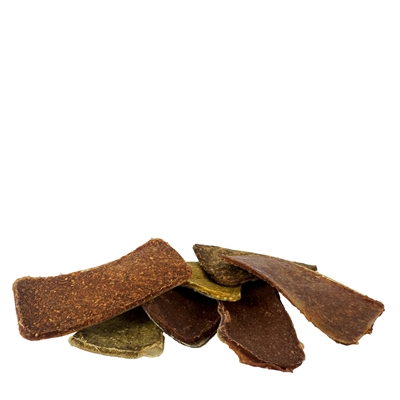 Samenstelling: Buffelhuid (49,5%), rund óf kip óf eend óf kaas (25%), kleefrijstmeel, gelatine (12,8%), gemodificeerd tapiocazetmeel, plantaardige vetten, kurkuma (1,4%).
