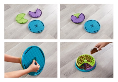 De Nina Ottoson Lickin'Layers Likmat 26 cm is een uitdagend intelligentiespel voor de hond, waarbij de hond de schijven moet verplaatsen om bij alle beloningen te komen. Plaats eenvoudig droogvoer, natvoer of snacks in de drie schijven. Jouw hond zal mentaal én lichamelijk uitgedaagd worden om het eten te vinden. De hond moet met de snuit en poten de schijven ronddraaien om zo al het eten te pakken te krijgen. Dit zorgt dat de hond actief moet nadenken over hoe zijn doel te bereiken en hij tevens lichamelijk bezig is. Het spel is schoon te maken door het eenvoudig uit elkaar te halen en de schijven met de hand af te wassen met een milde zeep en water.