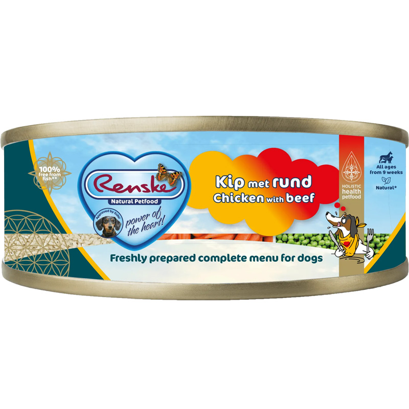 Renske Vers Vlees Kip / Rund 24 x 95 cm is compleet natvoer voor de hond, 100% natuurlijk met vers bereid vlees of vis en vrij van gluten. De vers bereide maaltijden van Renske bevatten alles wat jouw hond nodig heeft. Deze smakelijke maaltijden met hoogwaardige ingrediënten zijn 100% natuurlijk, licht verteerbaar en verrijkt met duindoorn, gedroogde algen en yucca schidigera. Daarnaast bevat het voer alle benodigde anti-oxidanten, vitaminen en mineralen voor een gezonde hond en draagt zo bij aan een goede ontwikkeling van de hersenen, het herstellende vermogen van de huid en een goede spijsvertering en sterk immuunsysteem. Elke variant bevat tussen de 40% en 65% vers vlees en is daardoor ook nog eens zeer smakelijk. Bovendien zijn deze maaltijden ook een uitkomst voor de baas, omdat ze zeer makkelijk in gebruik zijn: de maaltijd kan na openen drie dagen in de koelkast bewaard worden en hoeft niet ingevroren te worden. Zonder kunstmatige toevoegingen en suiker en zout!