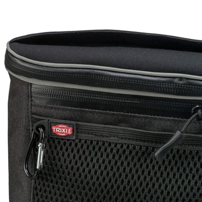 Het Trixie Beloningszakje Snackzakje Duo Treat Zwart 20X5X20 cm is ontworpen voor snelle en gemakkelijke toegang tot snacks dankzij de handige spleten in de afdekking. De binnenkant is in tweeën gedeeld, ideaal voor het scheiden van verschillende soorten snacks. Dit veelzijdige zakje kan zowel als heup- als schoudertas gedragen worden en beschikt over een traploos verstelbare, afneembare heupriem. Het is voorzien van een karabijnhaak, buitenvakken, een bevestigingsclip en -lus voor aan de broekriem, en een geïntegreerde poepzakjes-dispenser. Reflecterende elementen zorgen voor extra zichtbaarheid in het donker. Gemaakt van duurzaam polyester. Dit snackzakje is perfect voor elke hondeneigenaar.