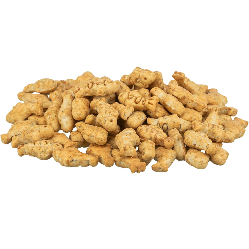 De Trixie Cookies Met Kip en Garnalen is een heerlijke kattensnack met kip- en garnalensmaak. In de vorm van kleine visjes, perfect om te geven als tussendoortje.