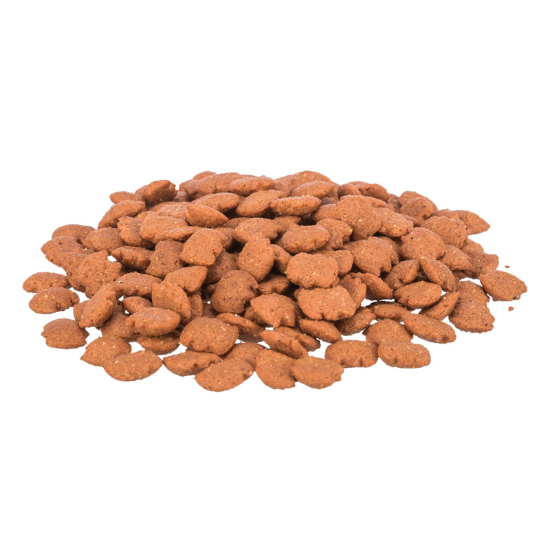 Samenstelling: granen, vlees en dierlijke bijproducten, vis en vis-bijproducten, olie en vetten, mineralen, plantaardige eiwitextracten, eieren en bijproducten hiervan, gisten