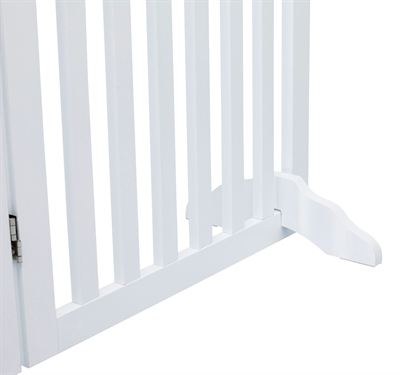 Jij zorgt ervoor dat jouw hond alleen blijft in ruimtes waar hij veilig is met dit handige hek van Trixie. Dit hek bestaat uit vier panelen a 51 x 81 cm, die op verschillende manieren opgesteld kunnen worden. Zo zet jij eenvoudig trappen of bepaalde ruimtes in huis af die niet veilig zijn voor jouw hond. Het hek is gemaakt van gelakt MDF en daarom erg stevig. De twee meegeleverde voetjes kunnen desgewenst onder het hek worden geplaatst voor meer stevigheid. Twee verbindingsbouten maken het combineren meerdere hekken mogelijk. Het hek is inklapbaar wanneer het niet gebruikt wordt. Ook geschikt voor grote honden!