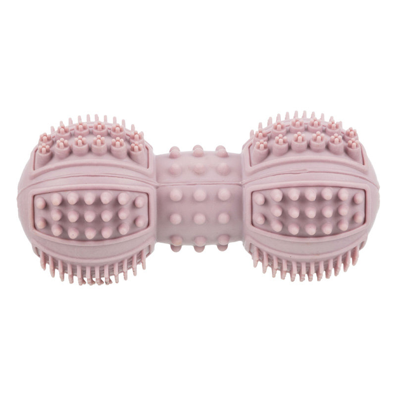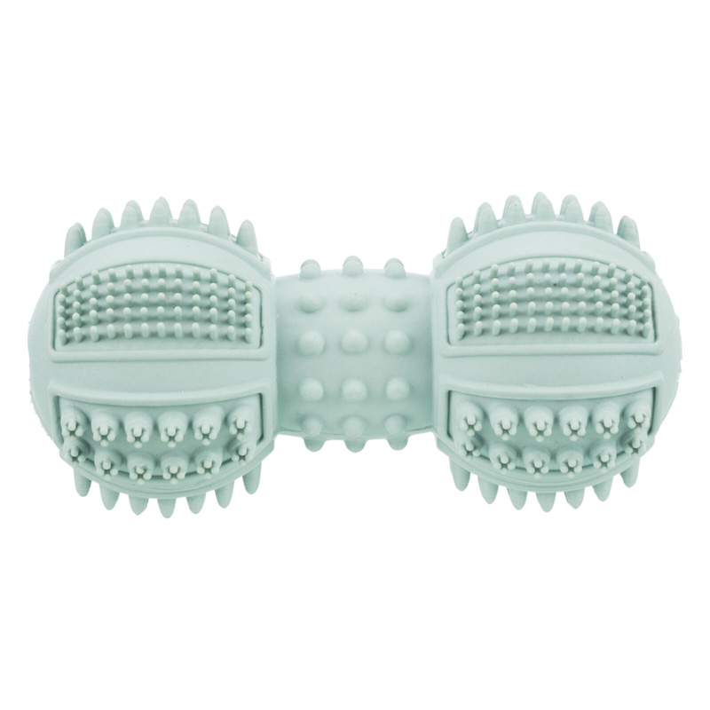 Het Trixie Junior Halter Natuurrubber Assorti 9 cm cm is leuk hondenspeelgoed voor puppy's, lekker om op te bijten en mee te spelen en goed voor het gebit! Natuurrubber is niet schadelijk voor de tanden van jouw hond en door de borstelachtige uitsteekseltjes wordt het gebit van jouw pup verzorgt tijdens het spelen. Ze wrijven langs het gebit en zorgen hierdoor dat het tandvlees gemasseerd wordt en de tanden van bacteriën worden ontdaan. Ook heerlijk om lekker in te bijten bij het wisselen van de tandjes!