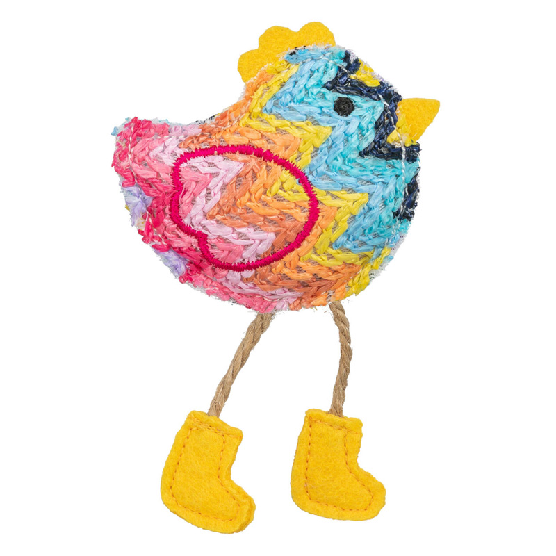 De Trixie Kip Met Kattenkruid/Catnip is een speels en kleurrijk kattenspeeltje dat katten uitnodigt om te jagen, tikken en rond te springen. De gevlochten, stevige structuur in combinatie met de vrolijke kleuren maakt dit speeltje extra interessant om te ontdekken. Dankzij de vulling met catnip worden veel katten direct enthousiast en spelen ze langer door. De bungelende pootjes zorgen voor extra speelplezier tijdens het slaan en grijpen.