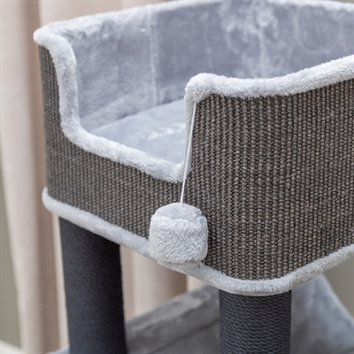 – Bekleed met zacht pluche en voorzien van jute krabpalen