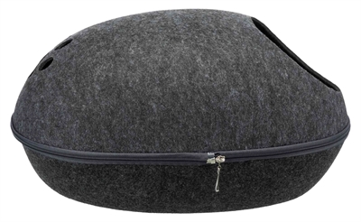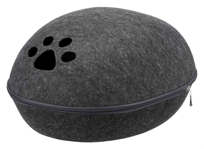 Deze Trixie Relax Iglo Liva Kattenmand Antraciet 40X24X47 cm is een heerlijk mandje met een ronde vorm. In dit mandje zou je het liefst zelf willen gaan liggen! Dit gezellige kattenhuisje is rond van vorm, met aan de voorkant een gat dat toegang biedt voor de kat. Heerlijk veilig en knus slapen dus! Het huisje is gemaakt van vilt (polyester), wat er niet alleen leuk uitziet, maar er ook voor zorgt dat het huisje isolerend en vuilafstotend is. Het huisje komt met een kussen met polyestervlies vulling en pluche bekleding. Ook heeft de iglo een ritssluiting rondom, en kun je het gehele mandje in elkaar plaatsen en dus ruimtebesparend opbergen. Een heerlijk knus en origineel mandje voor jouw kat!