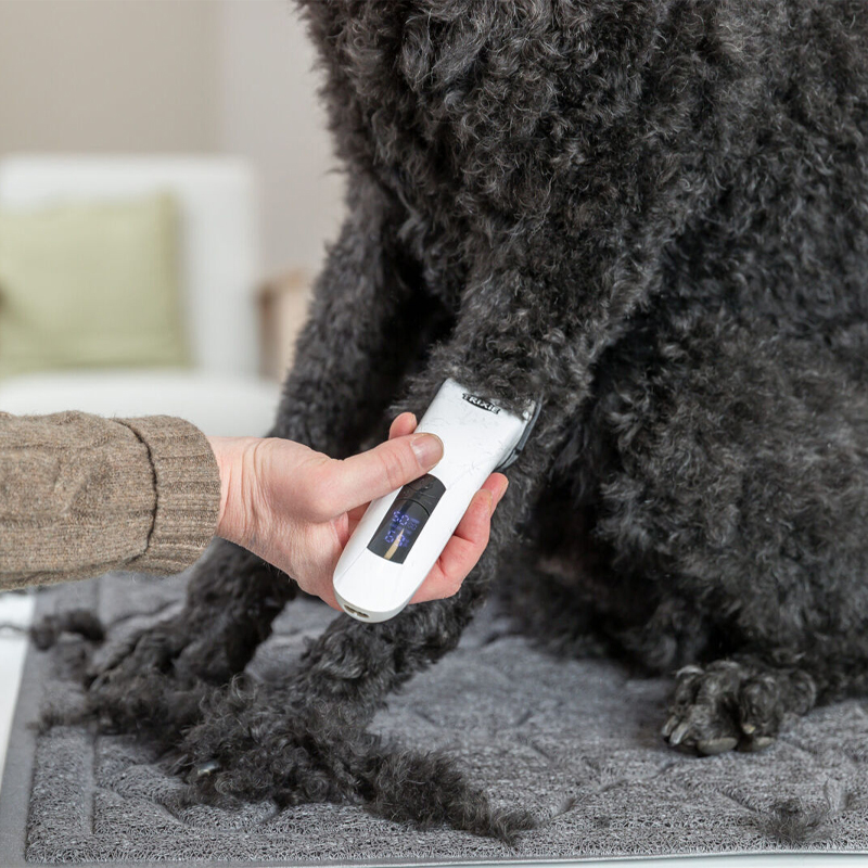 De Trixie Tondeuse Set TR1600 Draadloos Wit is een professionele en krachtige tondeuse die perfect is voor zowel gedeeltelijke als volledige scheerbeurten bij je huisdier. Dankzij het robuuste en ergonomische ontwerp ligt hij prettig in de hand, zelfs bij langere scheersessies. De soepel lopende, regelbare motor zorgt voor een rustige werking en optimale controle tijdens het trimmen. De tondeuse is uitgerust met een roestvrijstalen scheerkop die verstelbaar is van 0,3 tot 4,3 mm en is eenvoudig verwisselbaar (type 23885-10). Op het duidelijke display zie je in één oogopslag het oplaadniveau en het actuele toerental. Met een looptijd tot 120 minuten en een oplaadtijd van slechts 2 tot 3 uur is hij snel weer klaar voor gebruik. De set wordt compleet geleverd met 4 opzetkammen, een schoonmaakborsteltje en olie, alles wat je nodig hebt om direct aan de slag te gaan.