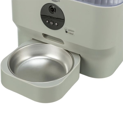 De Trixie Voerautomaat TX-C Smart Lichtgrijs 5 ltr biedt alles wat je nodig hebt voor een flexibele en efficiënte voeding van je huisdier. Met besturing via een app en een geïntegreerde camera kun je tot wel 10 maaltijden per dag programmeren en je hond op afstand monitoren. De automaat kan maximaal 5 liter droogvoer bevatten en is geschikt voor brokken met een diameter van 3 tot 13 mm. De camera met groothoeklens en infraroodzicht maakt foto- en video-opnamen mogelijk, zelfs in het donker, en de bewegingsdetector zorgt voor actuele video-livestreams. Dankzij de microfoon en luidspreker kun je op elk moment met je hond communiceren. Je kunt de voerhoeveelheid voor elke maaltijd individueel instellen, variërend van 1 tot 20 porties, en de voerafgifte kan dagelijks of op specifieke dagen worden geprogrammeerd, met een extra optie voor spontane afgifte. De automaat heeft een uitneembare bak en een RVS-voederbak die vaatwasmachinebestendig is. Voor betrouwbaarheid bij stroomuitval kunnen optionele 3 D mono batterijen worden toegevoegd (niet inbegrepen). Gemaakt van duurzaam kunststof (ABS) met een automatische toetsenblokkering en geleverd met een stekker, combineert deze voederautomaat functionaliteit met gebruiksgemak.