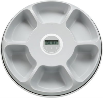 De Trixie Voerautomaat TX5+1 biedt uitkomst voor baasjes die hun dier op vaste momenten willen voeren, ook als ze zelf even niet thuis zijn. Deze automatische voerdispenser beschikt over zes compartimenten van elk 180 ml en kan worden ingesteld op maximaal vijf voedermomenten per dag. Dankzij het draaisysteem schuift bij elk ingesteld tijdstip een nieuw vak naar voren. Geschikt voor zowel droog- als natvoer. De automaat is voorzien van inklembescherming om verwondingen te voorkomen tijdens het draaien, een automatische toetsenblokkering en een batterij-indicator. De voerschaal is vaatwasserbestendig en de automaat werkt via USB-aansluiting (kabel meegeleverd) of batterijen.
